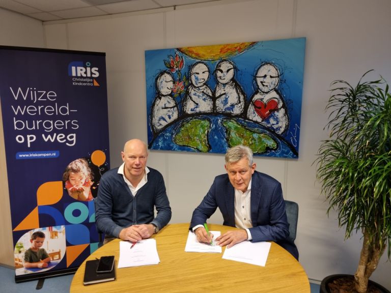 Op de foto: Links Bert de Lange (Prokino) en rechts Henk ter Wee (IRIS Christelijke Kindcentra)