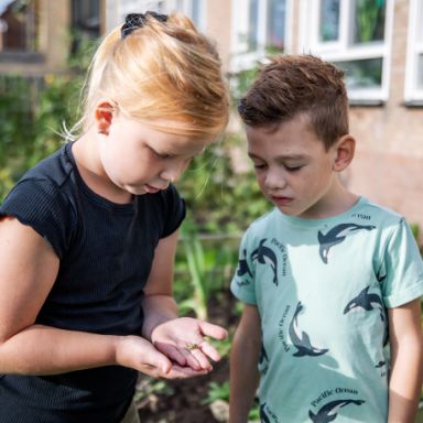 ‘Ook de kinderen kennen elkaar goed. Ze worden op school ook gestimuleerd om elkaar op te zoeken en samen te werken. We koppelen regelmatig de kleuters en de bovenbouw aan elkaar. Dan helpen leerlingen uit groep 8 de allerkleinsten. Leuk om te zien hoe kinderen van alle leeftijden samen optrekken.’